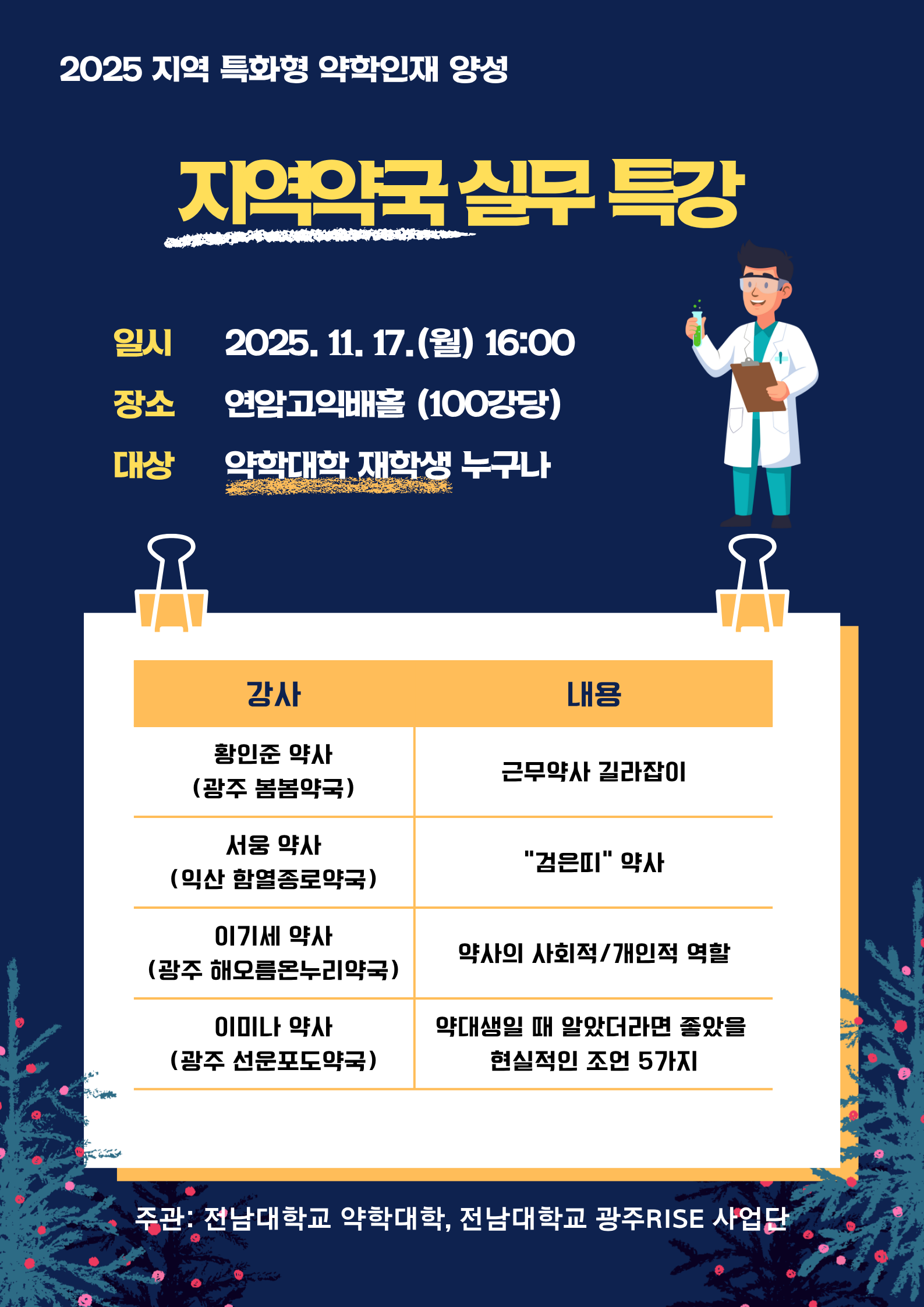 2025 지역 특화형 약학인재 양성을 위한 지역약국 실무 특강이