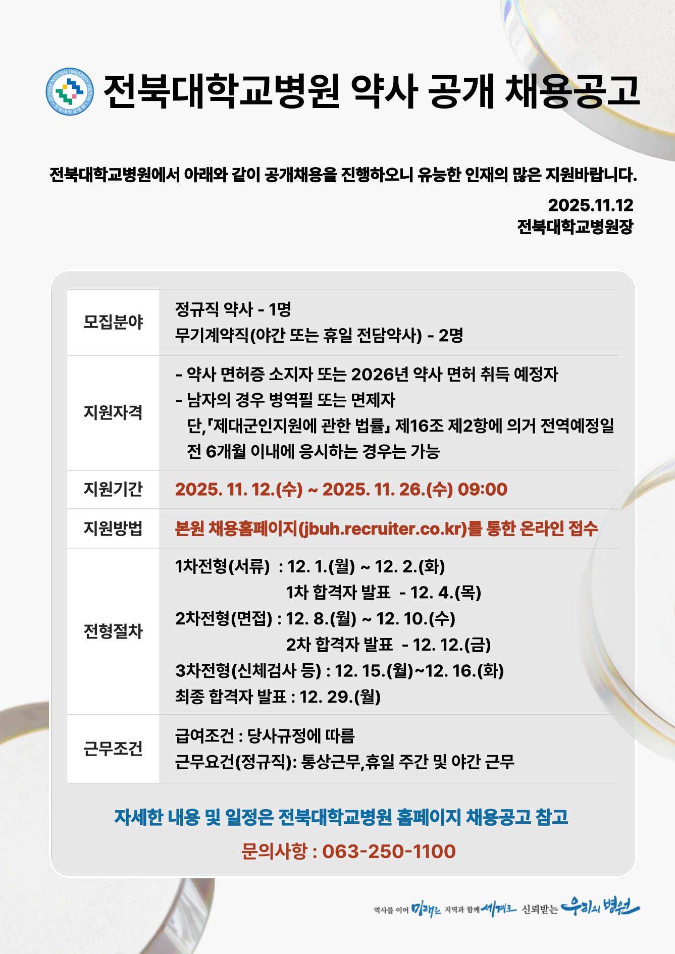 전북대학교병원 약사 채용 공고( ~ 11월 28일 09시 마감)